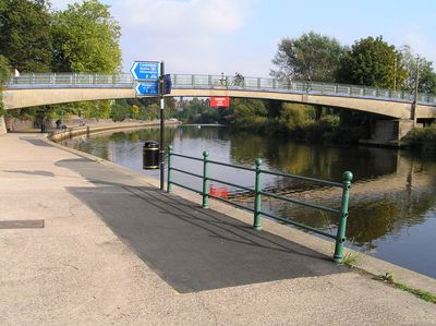 Castle Walk Footbridge, Betonnen voetgangersbrug in Shrewsbury, Engeland.