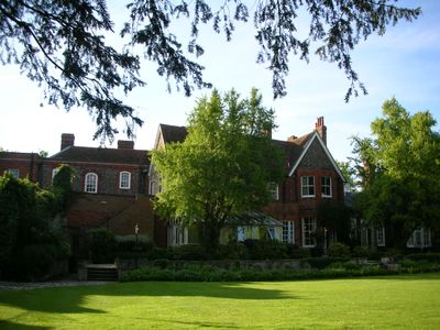 Het Cosener Huis toont traditionele Engelse architectuurelementen met stenen muren en ramen die uitkijken op de Abbey Mill stroom.