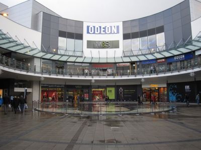 Eagles Meadow, Openlucht winkelcentrum in Wrexham, Groot-Brittannië.