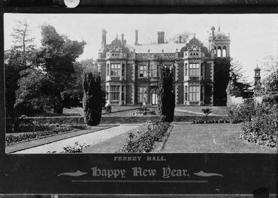 Ferney Hall is een landhuisgebouw van rode baksteen met decoratieve stenen raamlijsten, Nederlandse dakvensters en een indrukwekkende toren met drie verdiepingen aan de voorkant. Het gebouw onderscheidt zich door klassieke details zoals dorische pilasters bij de ingang en maakt deel uit van een beschermde parkaanleg.