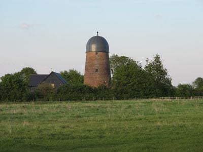 De Gainsford End Molen rijst 15 meter hoog met een basis van 6 meter diameter, voorzien van een koepel en een systeem met acht wieken.