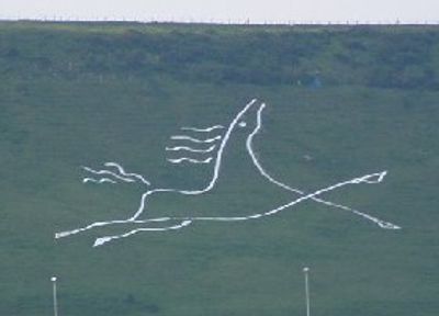 Folkestone White Horse, Paardenheuvel figuur op Cheriton Hill, Verenigd Koninkrijk.