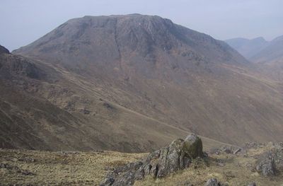 Kirk Fell bereikt een hoogte van 802 meter met een prominentie van 181 meter boven de westelijke heuvels van het Lake District.