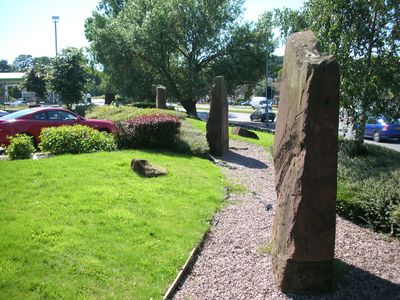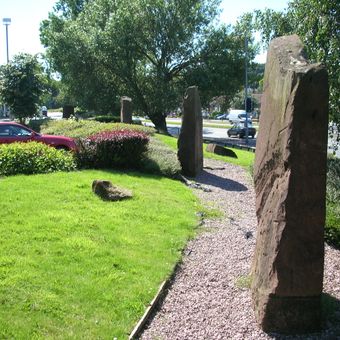 Lunar Society Moonstones, Sculpturaal monument op het terrein van de Asda-supermarkt in Queslett, Great Barr, Birmingham, Engeland
