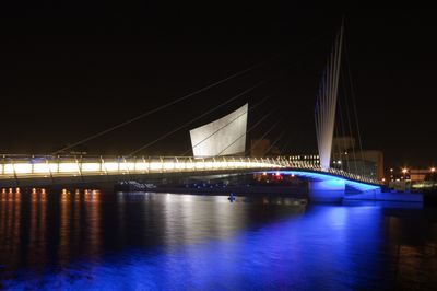 De brug werd geopend in 2011 als onderdeel van een belangrijk transformatieproject dat voormalige industriele kaaien omvormde tot een modern media- en technologiegebied. Deze ontwikkeling markeerde een belangrijk keerpunt in de geschiedenis van Salford Quays, wat revitaliseerde voormalige havengebieden.