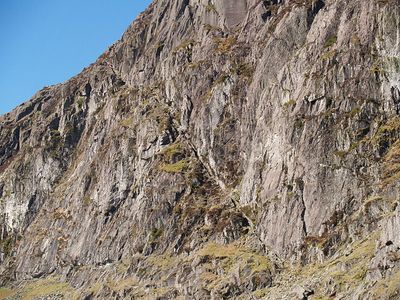De berg kreeg zijn huidige vorm tijdens voorbije ijstijden, toen gletsjers de dalen en kammen van het Lake District uitgroeven. De rotswand toont lagen van oude steen die door erosie gedurende miljoenen jaren zijn blootgelegd.