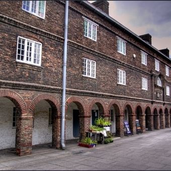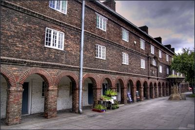 Het Holy Jesus Hospital is een gebouw van drie verdiepingen met bakstenen bogen ondersteund door vierkante pilaren in Newcastle upon Tyne.