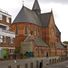 De gotische structuur van rode baksteen heeft een hoog priesterkoor, glas-in-loodramen van Clayton en Bell, en houtsnijwerk van Thomas Earp.