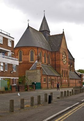 De kerk, voltooid in 1868 door architect James Brooks, maakte deel uit van het Haggerston Kerkenplan om de groeiende bevolking te bedienen.