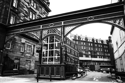 Het scherm vormde ooit de hoofdtoegangsvoor reizigers die heen en weer gingen tussen het station en het aangrenzende hotel, wat laat zien hoe grote terminals nauw verbonden waren met de horeca. Vandaag behoudt deze gevel zijn oorspronkelijke positie en toont het hoe Victoriaanse architecten ingangen ontwierpen als zichtbare overgangen tussen stedelijke ruimte en treinverkeer.
