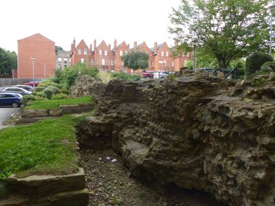 Roman wall, ditch and gate adjoining and under The Park, scheduled Roman wall in Lincoln, Lincolnshire, England, UK