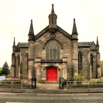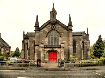 Het stenen kerkgebouw staat aan de Dundee Road en vertoont architectonische elementen van Schotse kerkelijke bouwstijl met hoofdingang en klokkentoren.