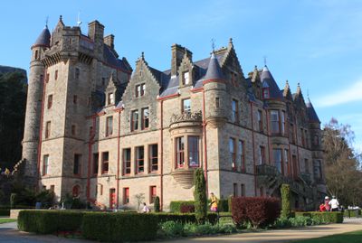 Belfast Castle is een versterkt gebouw op een heuvel in Noord-Ierland dat uitkijkt over de stad. De structuur heeft torens, kantelen en een binnenplein omgeven door stenen muren.