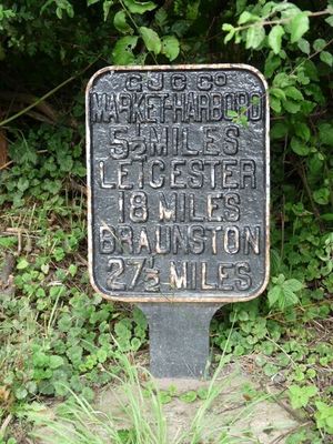 Milepost Circa 47 Metres East Of Bridge Number 62, Grand Union Canal, milestone in Foxton, Harborough, Leicestershire, UK