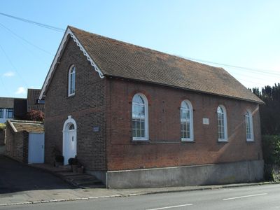 De Baptist Church in Uckfield is een rood bakstenen gebouw met vier ronde gewelfde ramen aan de zijkant en een traditioneel pannendak. De voorgevel heeft gebogen bargeboards en doorgebroken openingen in Georgische stijl.