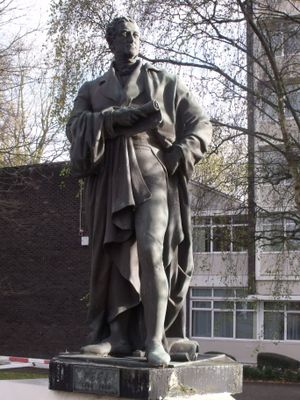 Statue of Sir Robert Peel in Front of Police Training College, statue in Birmingham, West Midlands, UK