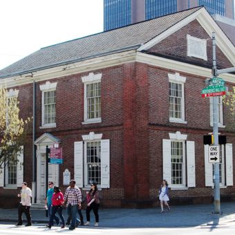 De National Park Service beheert dit historische gebouw in het Independence National Historical Park met interpretatieprogramma's.