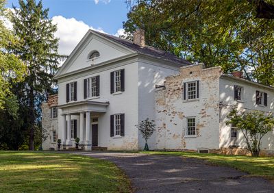 Het landhuis in federale stijl staat op twaalf hectare grond met gazons en bos, met originele open haarden, vloeren en trappen uit 1730.
