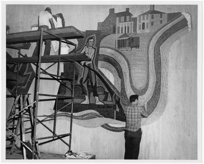 Elke tegel van het mozaïek werd met de hand gesneden en in mortel gezet door Herron School of Art-afgestudeerde Ralph Peck en zijn assistent, mevrouw Charles Pitts.