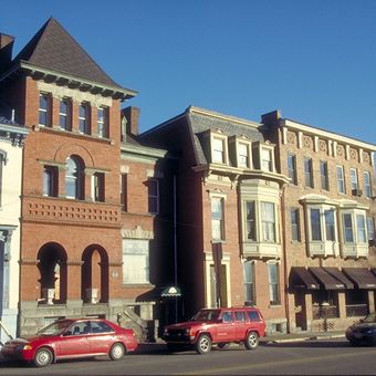 De buurt toont meerdere architectonische ontwerpen, waaronder Greek Revival, Renaissance Revival en Victoriaanse structuren gebouwd tijdens de midden tot late jaren 1800.