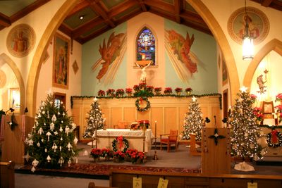 Het kerkkantoor aan de Varinna Drive beheert de religieuze diensten, met geplande weekendmissen en biecht beschikbaar op zaterdag.