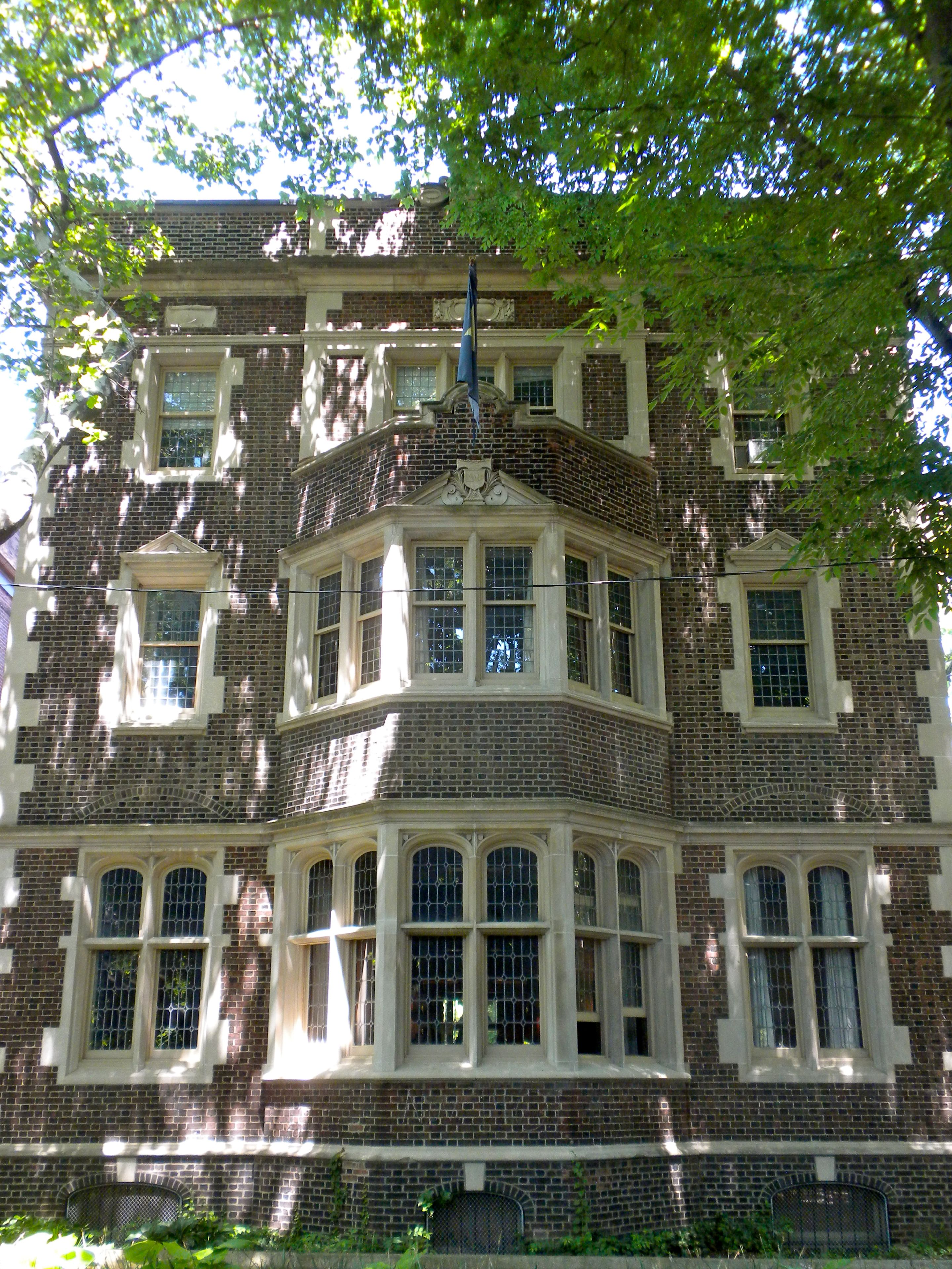 Gelegen op 3637 Locust Walk bevat het een eetzaal over de volle breedte, een bibliotheek, slaapzalen en metalen noodbalkons.