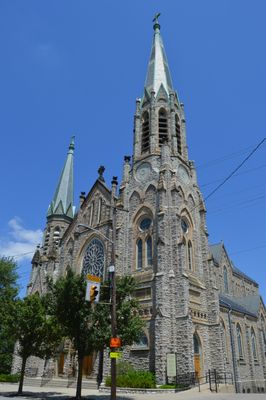 De eerste steen van het huidige gebouw werd gelegd in oktober 1886, en aartsbisschop William Henry Elder wijdde de voltooide kerk in september 1894.