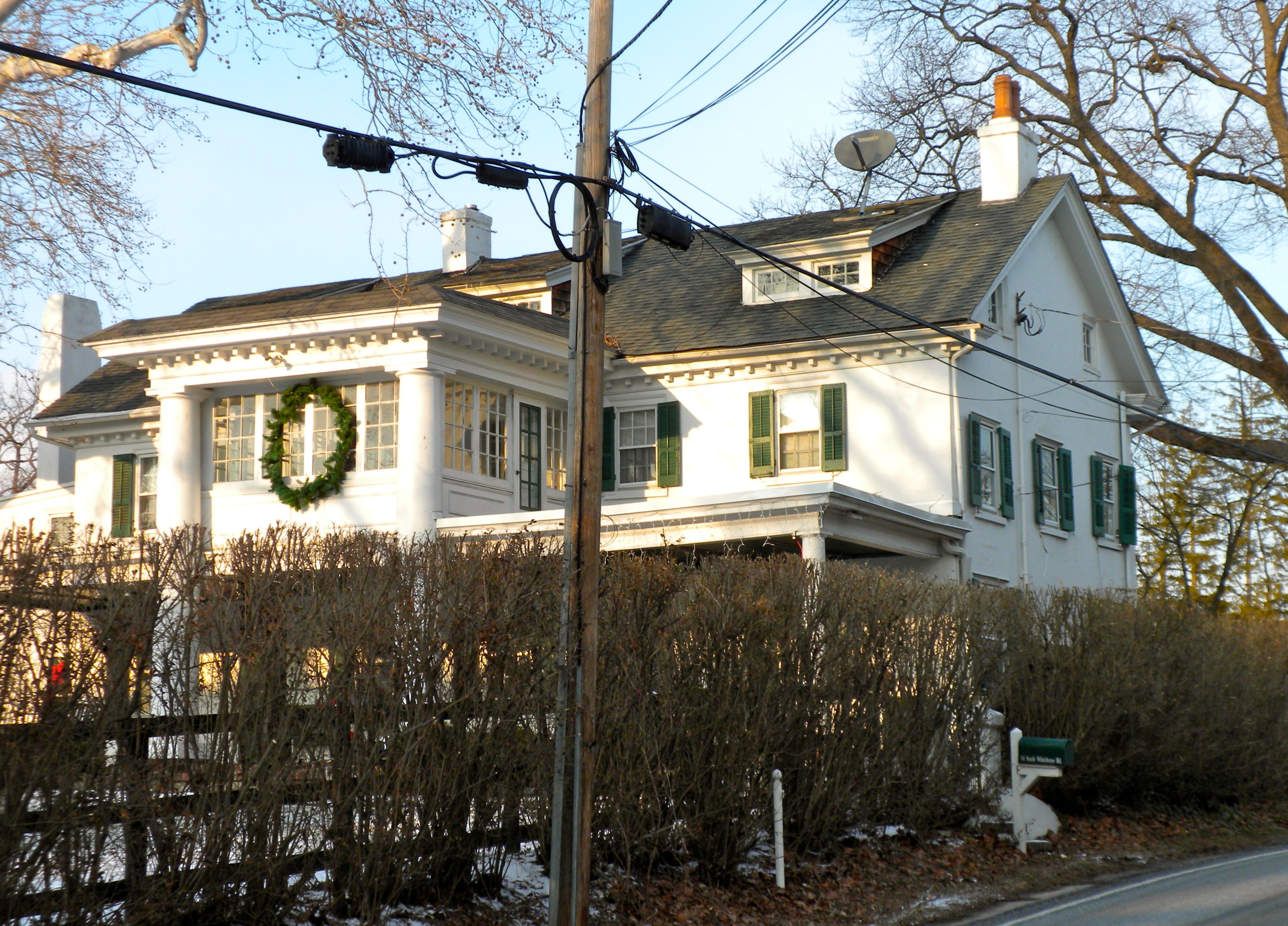 Het pand combineert Colonial Revival en Georgian Revival architectonische elementen, met een voorveranda met Dorische kapitelen.