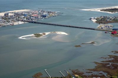 De Harry W. Kelley Memorial Brug overspant de Sinepuxent Bay met vier rijstroken en twee voetpaden voor voetgangers.