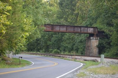 Norfolk Southern Six Mile Bridge No. 58, Spoorbrug in Mount Athos gebied, Virginia, Verenigde Staten