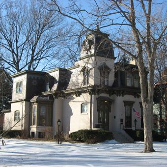 De tweeverdiepingen tellende residentie beslaat 0.7 acre grond en is het enige publiek toegankelijke Nationaal Register huis in oostelijk Indianapolis.