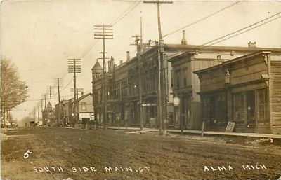 Het historische district van Alma strekt zich uit langs Superior Street tussen de Pine River en Prospect Avenue, met 72 commerciële gebouwen gebouwd tussen 1874 en 1960.