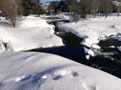 Most přes Teplou Vltavu v Kvildě pod soutokem s Kvildským potokem