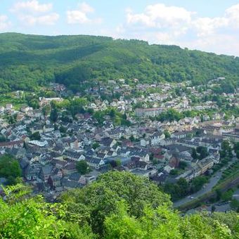 Nassau is een kleine stad in het Lahnvallei in Rijnland-Palts, gelegen langs de oevers van de rivier en omgeven door beboste heuvels. Het historische centrum heeft smalle straatjes en oudere gebouwen, terwijl het omringende landschap wordt gekenmerkt door dicht bos en steile dalwanden.