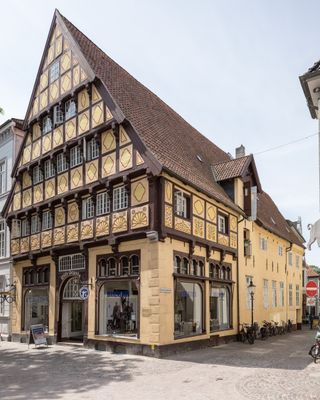 Het gebouw bevindt zich op Markt 24 in het centrum en functioneert momenteel als schoenenwinkel, waardoor het interieur voor bezoekers toegankelijk is. Het lohnt zich om een kijkje te nemen wanneer u in de buurt bent om het oude vakmanschap en de plafondschilderingen te zien.
