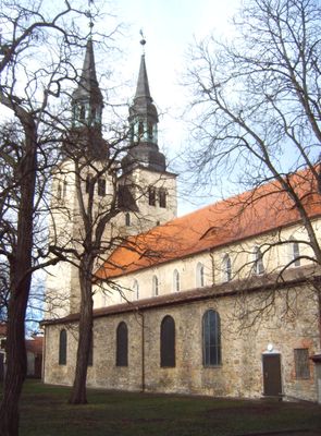 De bouw van St. Jakobi begon in het begin van de 13e eeuw met stenen uit de steengroeven van Plötzky, toen Schönebeck nog volledig ommuurd was.