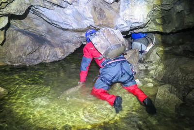 Binnenin bevinden zich verschillende met water gevulde sifons en een verticale val van ongeveer 60 meter tussen verschillende niveaus. Tijdens zware regenval stroomt water uit specifieke openingen, wat de actieve geologische dynamiek van het systeem onthult.