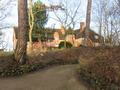 Het landgoed omvat een L-vormige garage, stallen en uitgestrekte terreinen die aansluiten op bos beheerd door het Deense Natuuragentschap.