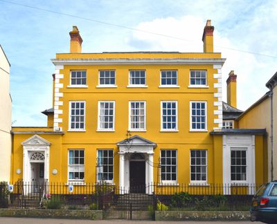 Cornwall House toont een Georgiaanse gevel met twee verdiepingen en een zolder, aangevuld met een voorplein met hekwerk uit 1770.
