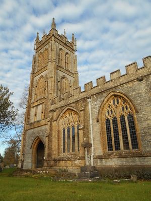 De kerk van de Heilige Maagd Maria is een middeleeuwse plaats van aanbidding met een hoge toren gebouwd rond 1500, versierd met pinakels en sierlijke steenpanelen. De muren combineren blauwe lias-steen met goudkleurig hamstone, wat het gebouw een kenmerkend uiterlijk geeft.