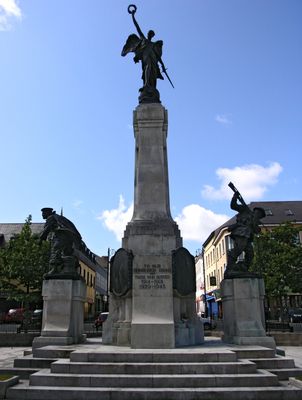Het Diamond oorlogsmonument toont bronzen beelden van een matroos en een soldaat onder een twaalf meter hoog monument met een gevleugelde overwinnaarsfiguur.
