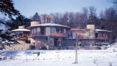 Het huis weerspiegelt architecturale denkbeelden die natuurlijke vormen en materialen in het ontwerp opnemen. De ronde grondplan en gebogen lijnen creëren een visuele benadering die afwijkt van typische rechthoekige gebouwen.