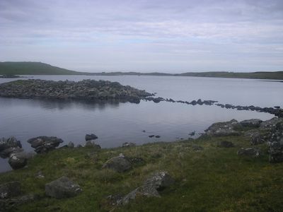 Het fort staat op een eilandje in Loch of Huxter en is verbonden met het vasteland door een stenen weg die het water overbrugt.
