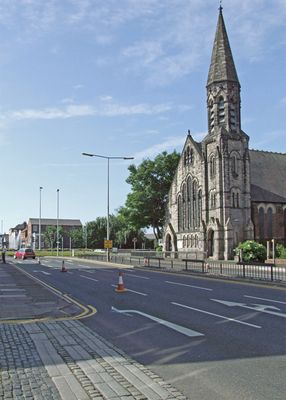 Northgate Church is een neogotisch gebouw aan Upper Northgate Street met duidelijke architecturale kenmerken en een opvallende spits. De structuur combineert zandsteenbekleding op de voorgevel met baksteenconstructie op de zijmuren.