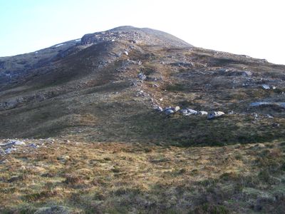 De top bevat een trigonometrisch punt omgeven door een cirkelvormige stenen dijk, met uitzicht op Ben Hope en de omringende wildernis.