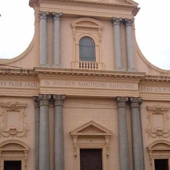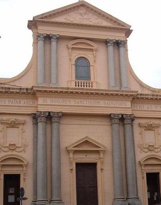 De Santissimo Salvatore kerk heeft een neoclassicistische gevel met Korinthische zuilen en meet 105 meter in lengte en 56 meter in breedte.