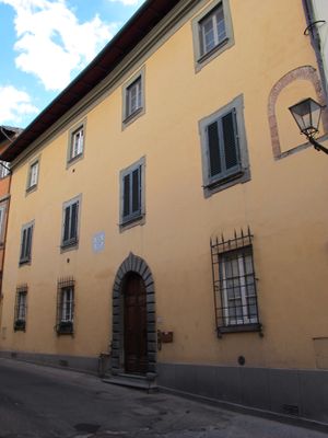 Een herdenkingsplaat op de gevel markeert de verbinding van de familie Buonaparte met San Miniato en hun Toscaanse erfenis. De plaat dient als herinnering aan hoe deze plek de lokale wortels van de familie in de gemeenschap verankert.