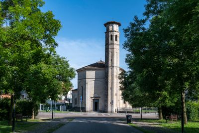 De Santissima Trinità is een kerk met een zeldzaam achthoekig grondplan, bekroond door een piramidaal dak met een circulair interieur. Deze ongewone vorm was een bewuste keuze om harmonie en spirituele betekenis in de architectuur uit te drukken.