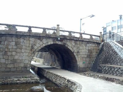 De Horikawa Daiichi brug strekt zich 14 meter in lengte en 8,2 meter in breedte uit over de Horikawa rivier met een cirkelvorming stenen boogontwerp.