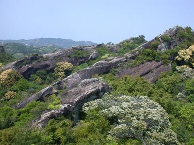 De zandsteenformaties hebben religieuze betekenis in Shinto-praktijken, waar zij de aanwezigheid van Kami vertegenwoordigen en als natuurlijke altaren dienen.